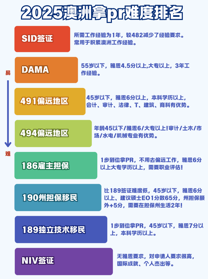 澳洲经历了一系列的移民改革,今天跟大家仔细聊聊澳洲主流移民方式的难度,需要的朋友可以参考!